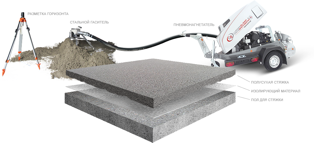 Чтобы выполнить полусухую сухопрессованную стяжку пола, потребуются следующие компоненты:
